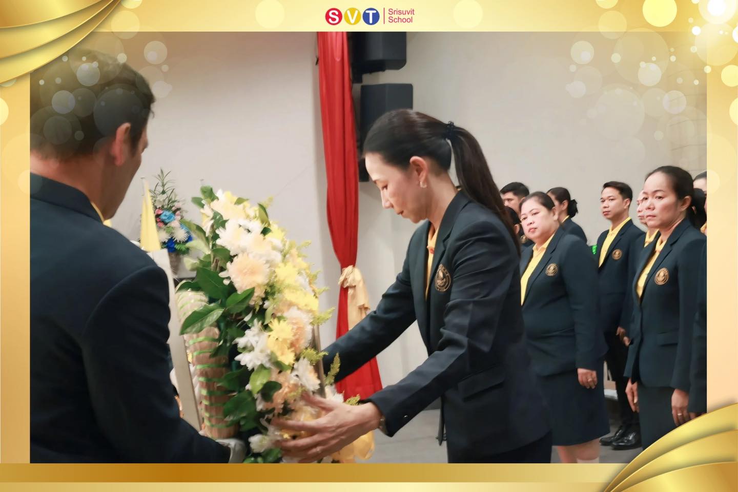 ดร.ประถมาภรณ์ ฟักฤกษ์ และคณะครูโรงเรียนศรีสุวิช ร่วมพิธีวางพวงมาลาถวายราชสักการะ เนื่องในวันคล้ายวันสวรรคตพระบาทสมเด็จพระบรมชนกาธิเบศร มหาภูมิพลอดุลยเดชมหาราช บรมนาถบพิตร “วันนวมินทรมหาราช”