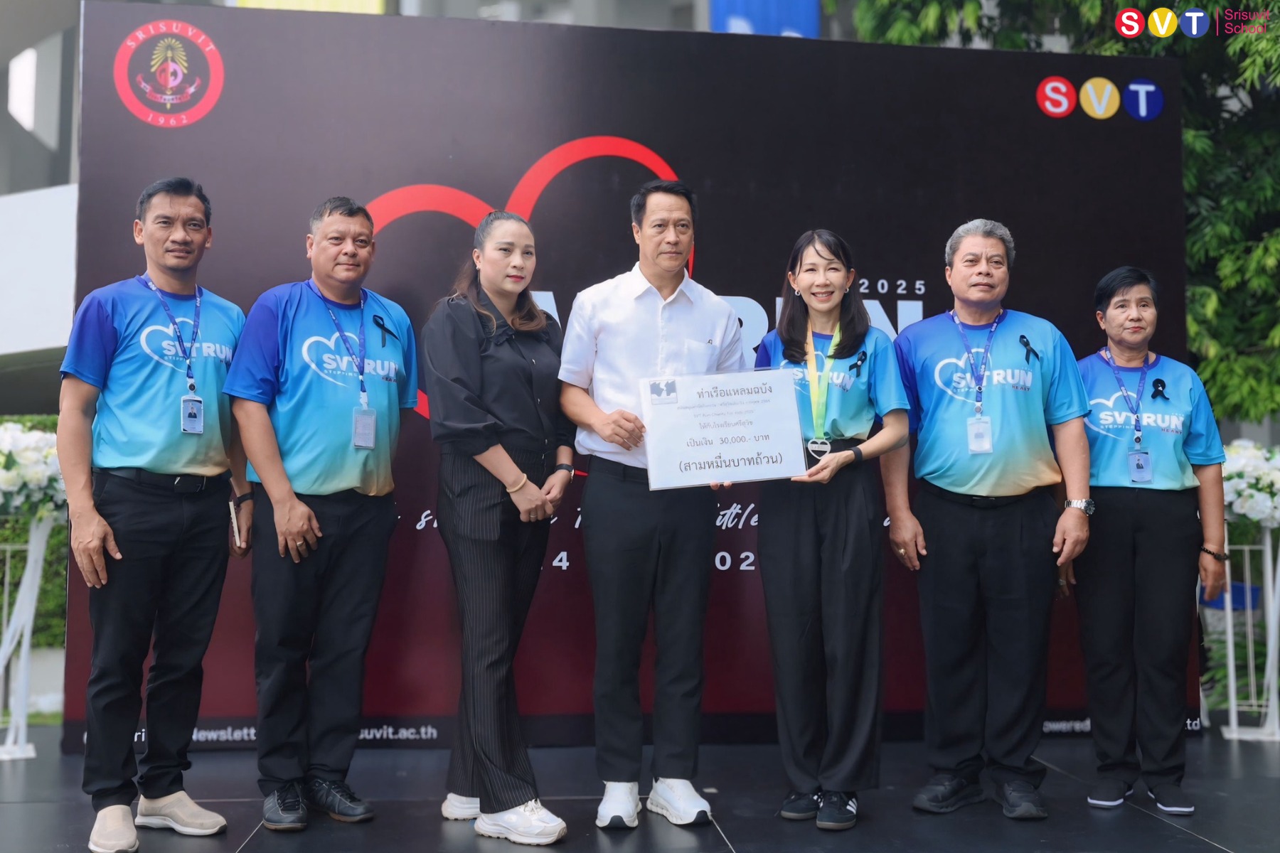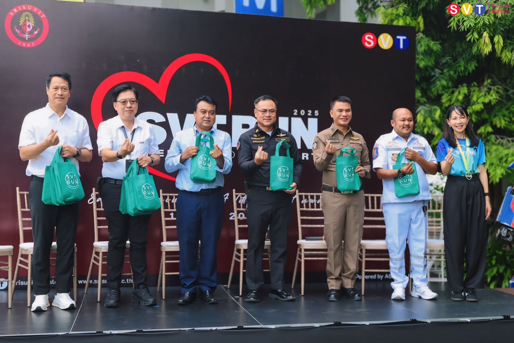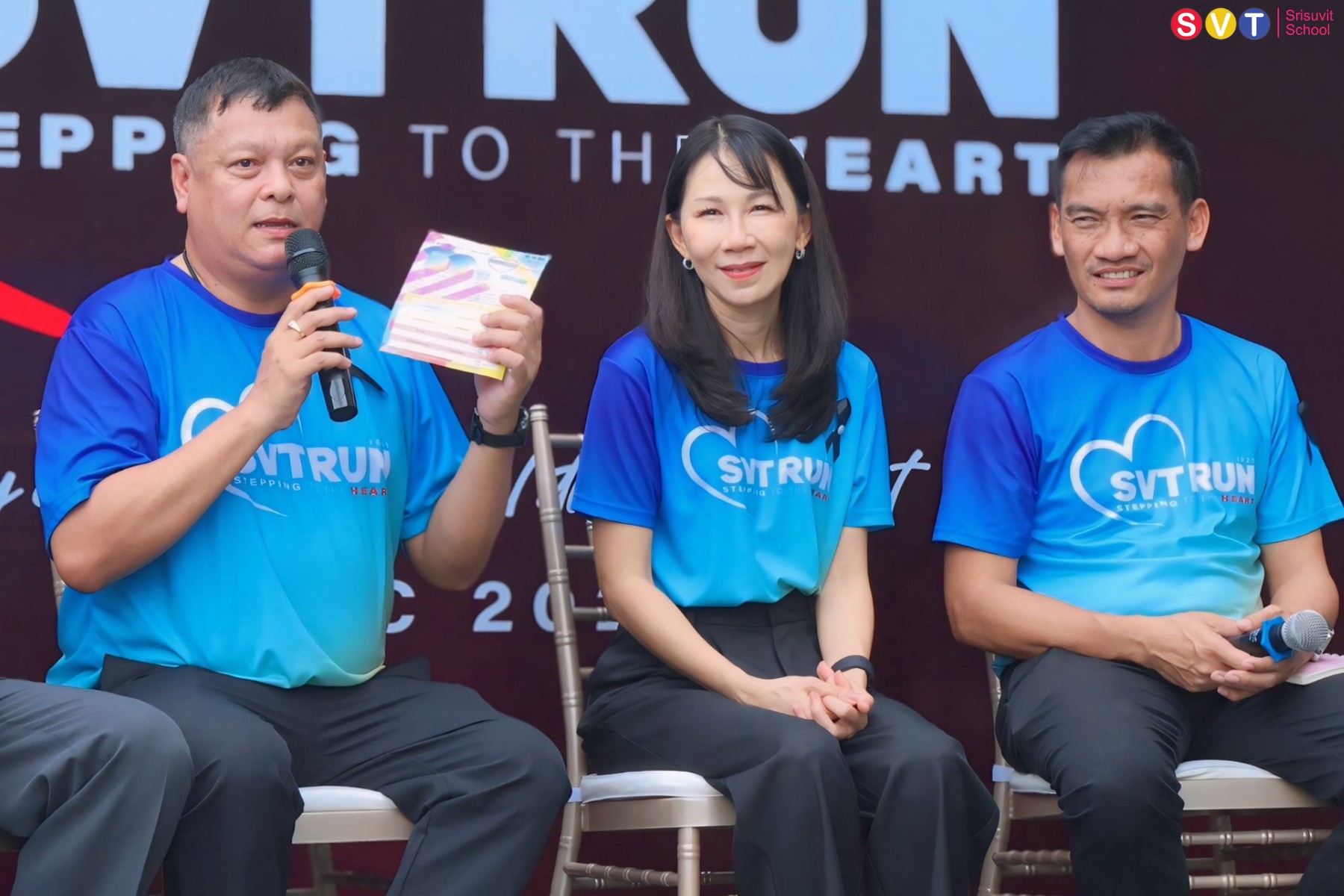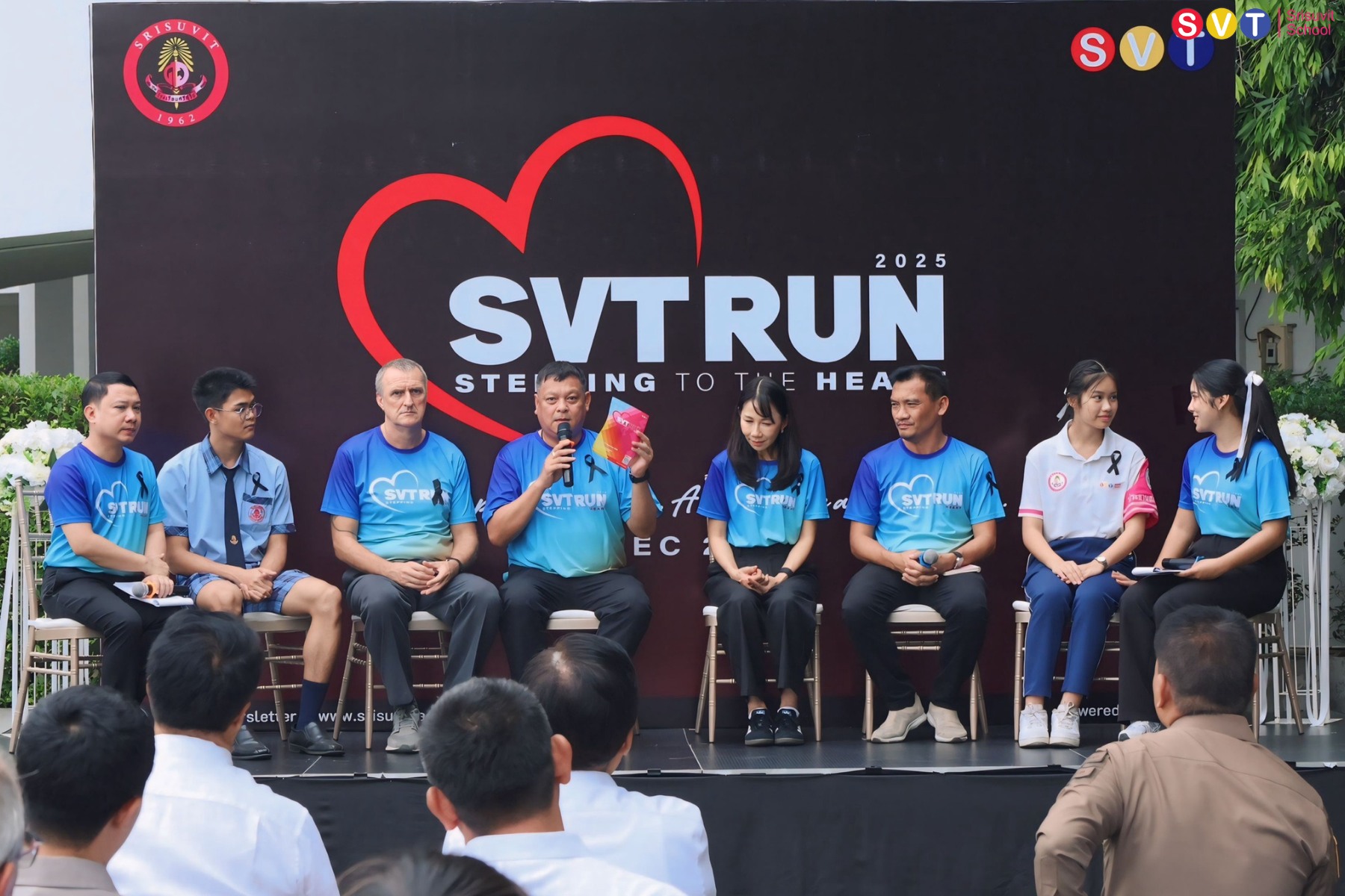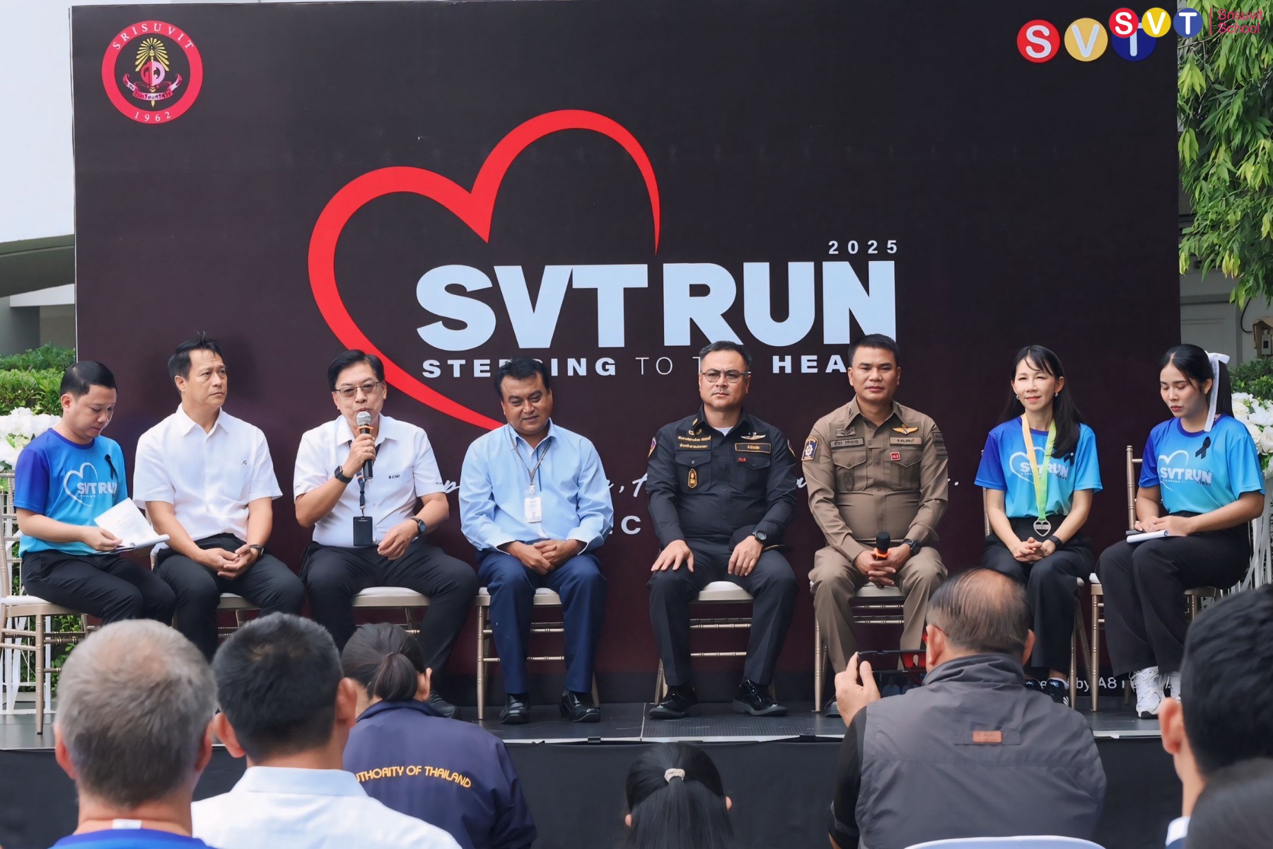 ดร.ประถมาภรณ์ ฟักฤกษ์ ผู้อำนวยการโรงเรียนศรีสุวิช ประธานคณะกรรมการจัดงาน พร้อมคณะกรรมการ ได้ร่วมกันแถลงข่าวการจัดงาน SVT RUN 2025 : Charity For Kids
