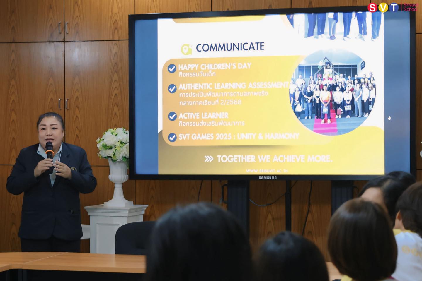 ดร.ประถมาภรณ์ ฟักฤกษ์ ผู้อำนวยการโรงเรียนศรีสุวิช คุณครูหัวหน้าฝ่ายวิชาการปฐมวัยและคุณครูหัวหน้าสายชั้นเข้าร่วมประชุมพร้อมกับคณะผู้ปกครองเครือข่าย เพื่อเตรียมความพร้อมการจัดกิจกรรมของนักเรียนปฐมวัย และการพัฒนาศักยภาพของนักเรียน การประเมินการเรียนรู้ตามสภาพจริง (Authentic Learning Assessment) กิจกรรมด้านกีฬา การพัฒนาสมรรถนะในการเจริญเติบโต รวมถึงกิจกรรมที่ส่งเสริมสนับสนุนการสร้างแรงบันดาลใจให้กับนักเรียนอนุบาล 3 ที่กำลังก้าวขึ้นสู่วัยประถมศึกษา